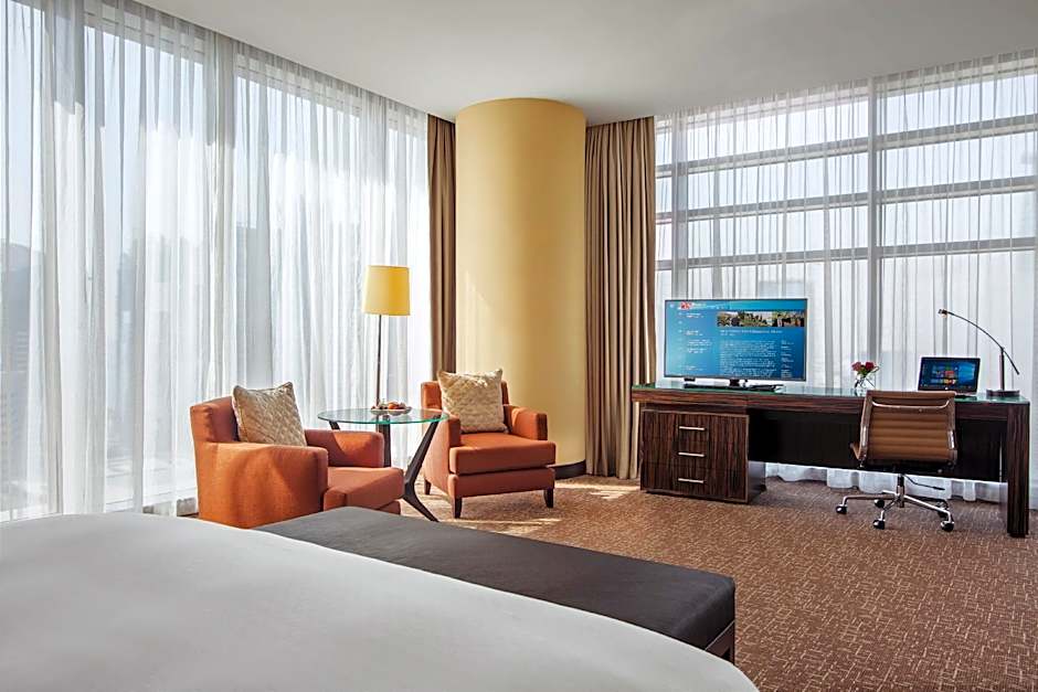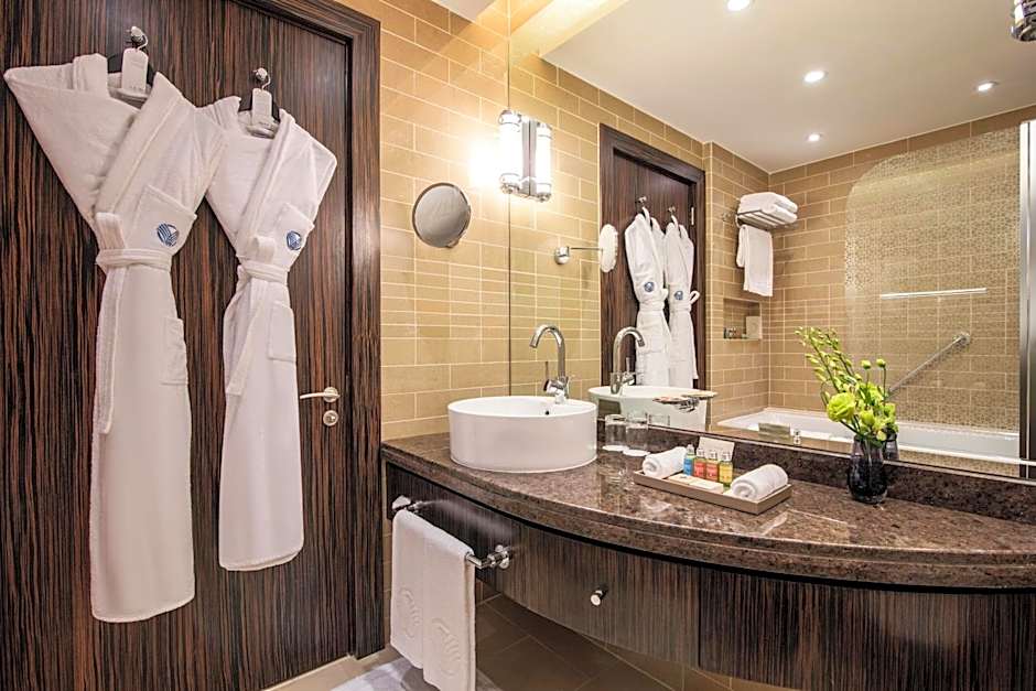 This room is located on the top floors and offers exclusive access to the Club Rotana Lounge where you can enjoy private and express check-in and check-out, a classy lounge offering breakfast, afternoon tea and evening cocktails along with complimentary use of a boardroom with secretarial services.